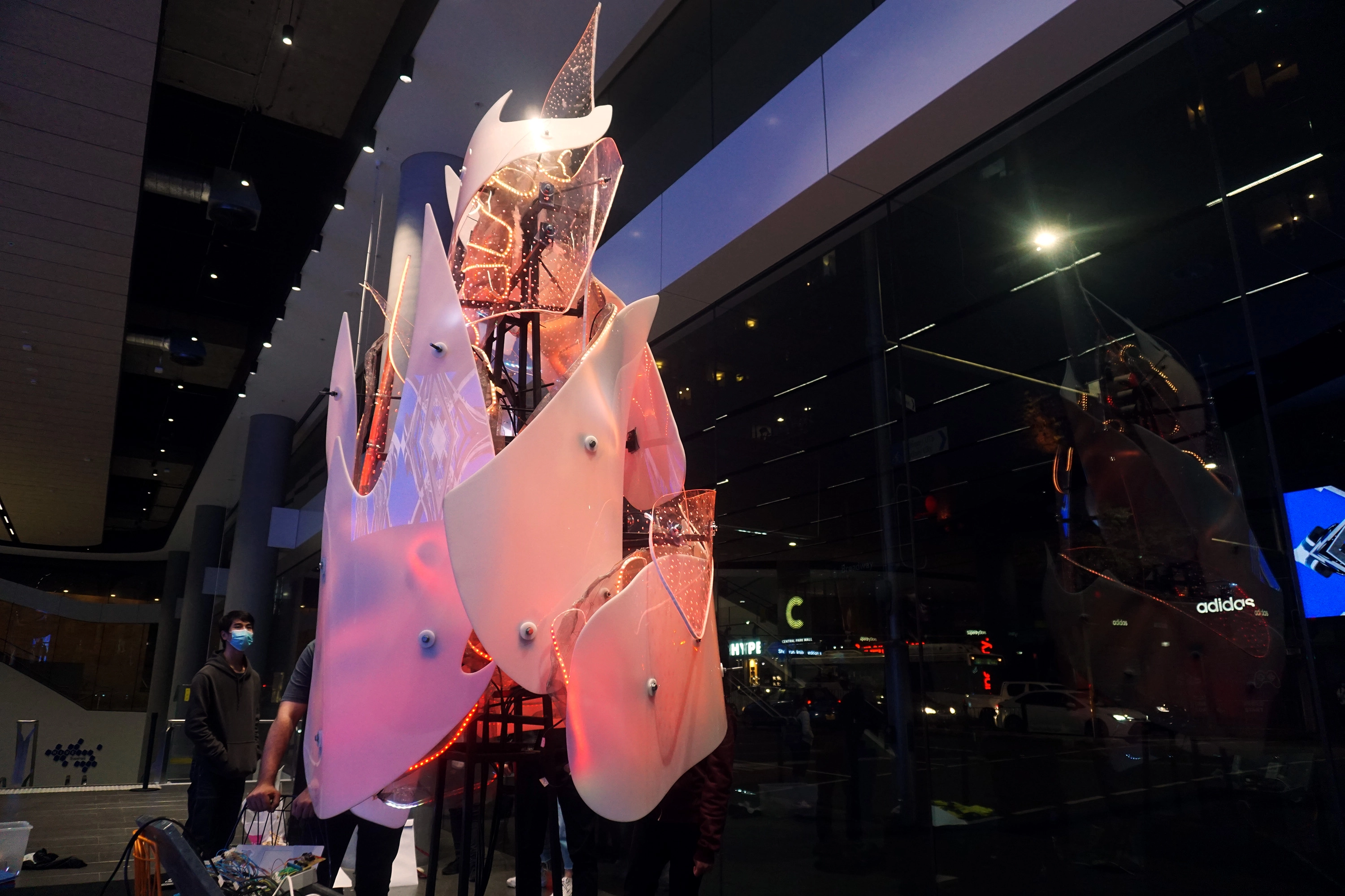 Sadly however, we were interrupted, by natural causes. This sculpture was originally made for Vivid 2020, which was, of course, cancelled. We resubmitted in 2021 and were cancelled once again. While not officially part of the Vivid 2022 line-up, UTS decided to run a separate satellite event, allowing our sculptures to finally see the light of day after two and a half years.