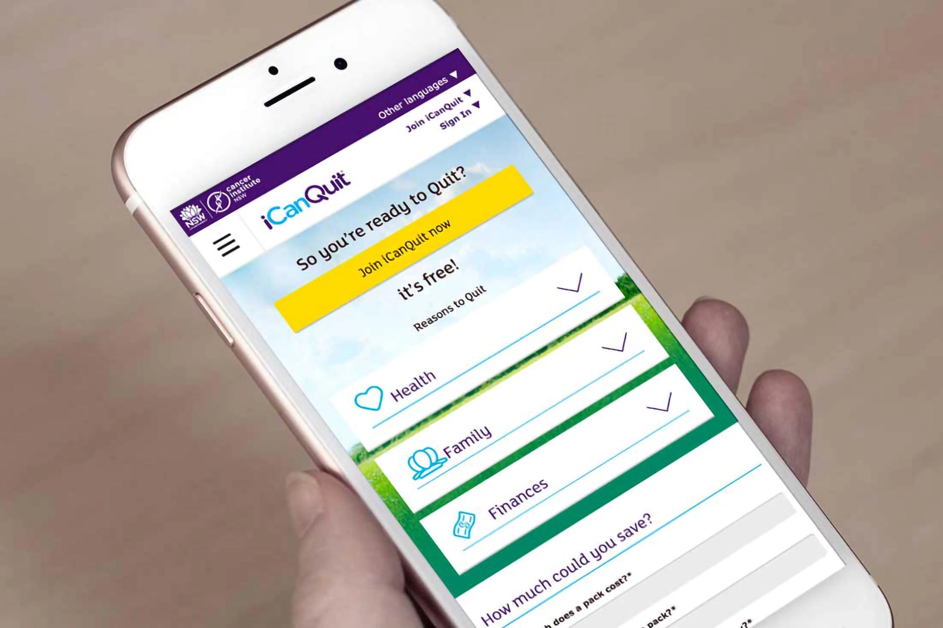 iCanQuit provides support services to smokers with the aim of reducing the prevalence of smoking in NSW, including an online quit smoking tracking tool and guide, and a place to connect with the stories and experiences of others on the same journey.