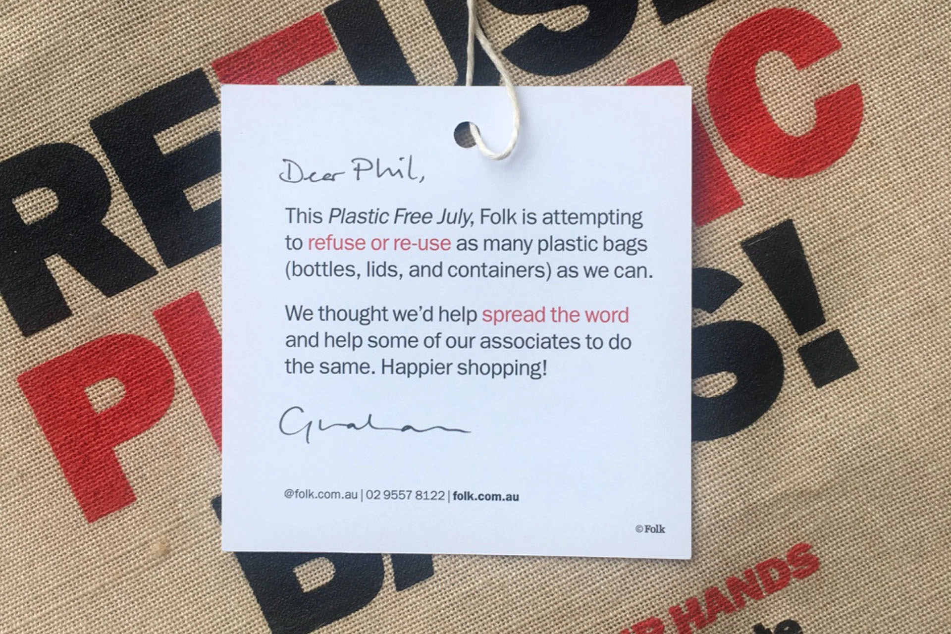 Thank you and well done to all – including everyone at Folk – for their efforts this Plastic Free July.
