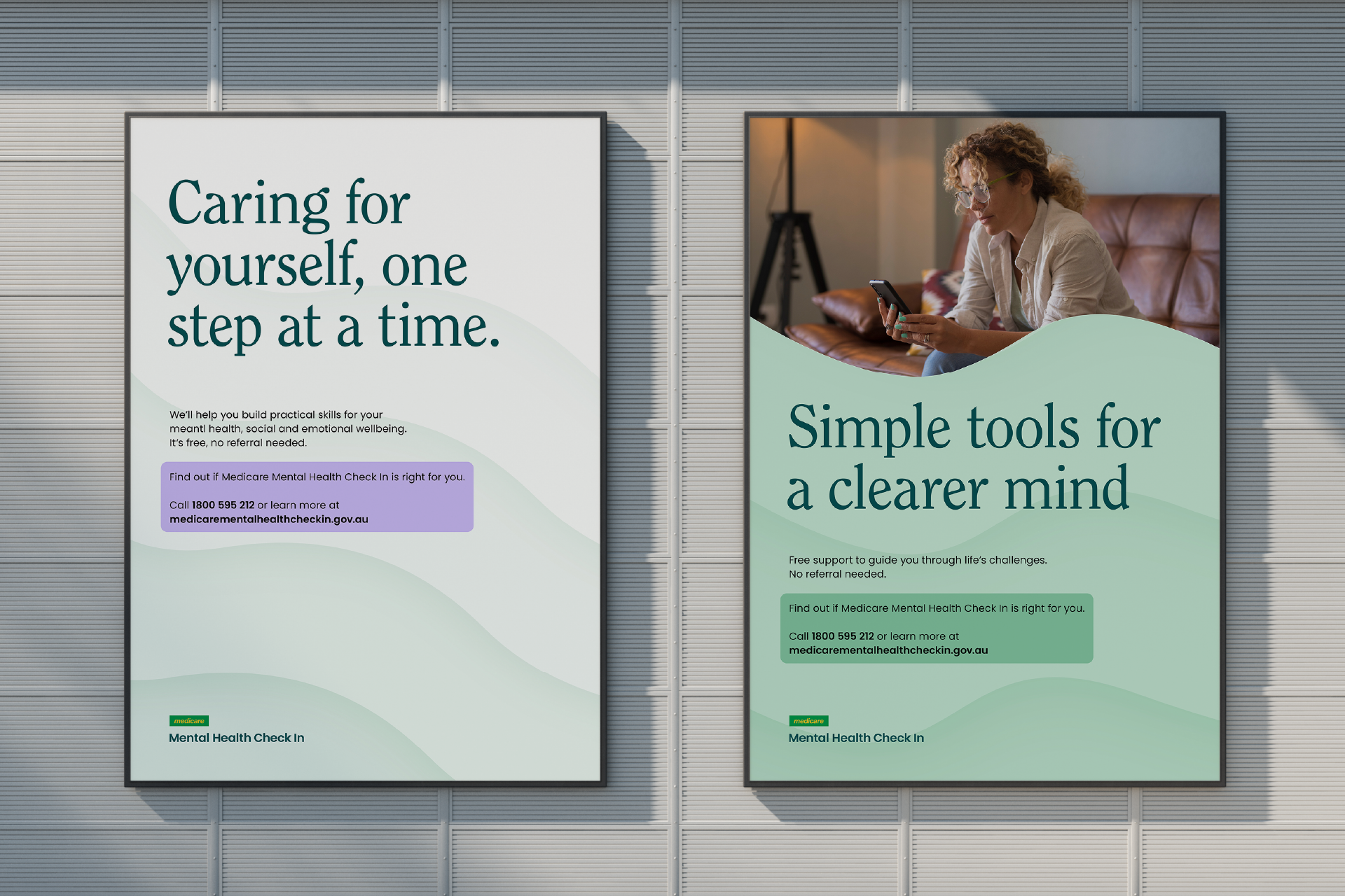 We worked with the Department of Health, Disability and Ageing (the department) to shape how Medicare Mental Health Check In shows up, creating a compelling brand that can resonate nationally.