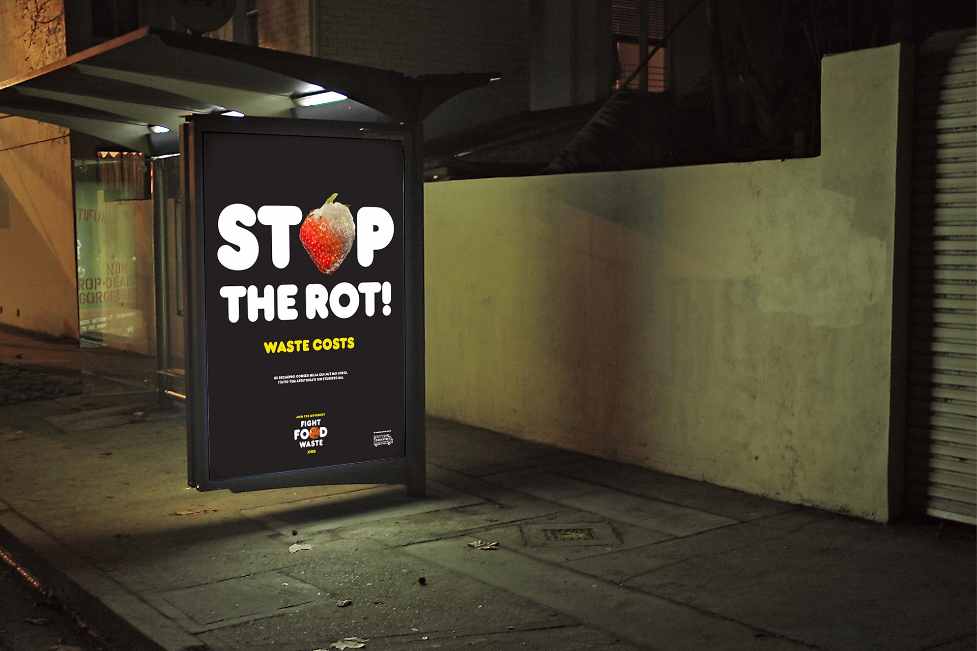 ‘Stop the rot!’ is the more surprisingly obvious proposed Phase 2 message, underpinned by the ‘Fight Food Waste’ sign-off.