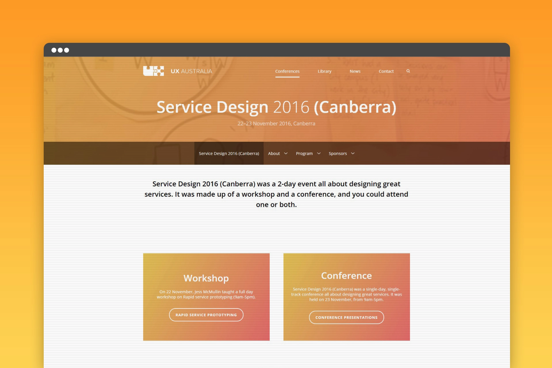 You can find out more about Service Design 2016 (Canberra) @ http://www.uxaustralia.com.au/conferences/service-design-2016-canberra