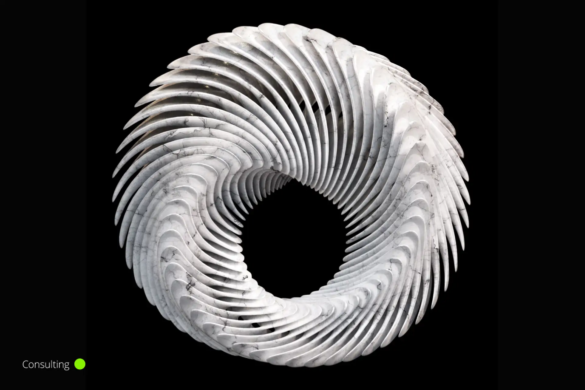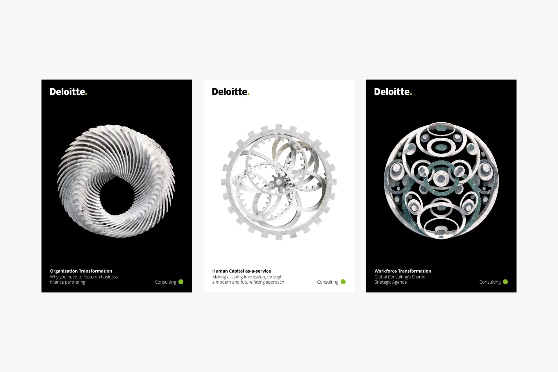The literal Offering titles required lateral representations. The result is a collection of striking, often beautiful, abstract physical forms – all executed within Deloitte’s signature circle motif.